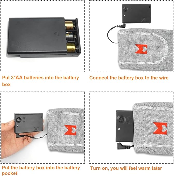 - 【Easy to Use】: It's very easy for you to use the heated socks. You just need to put 3*AA batteries into the battery box correctly, and press the ON/OFF, you will feel warm later. This is very friendly for elder people.