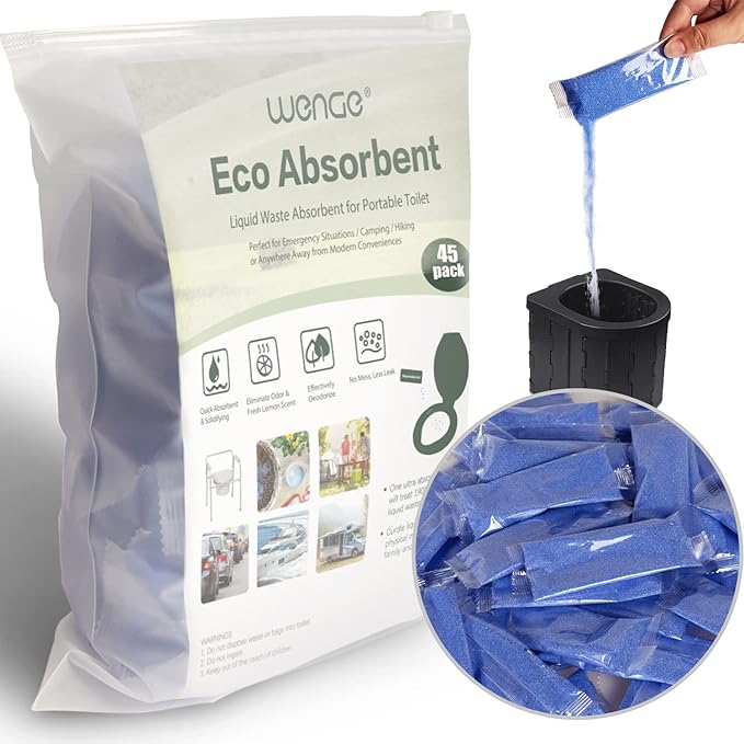 Wenge Potty Chemicals, Portable Toilet Powder - 45 Pack - Lemon scent, Pee Powder for Portable Toilet,Camping Toilet Chemicals, Eco Absorbent Gel Liquid Waste Gelling