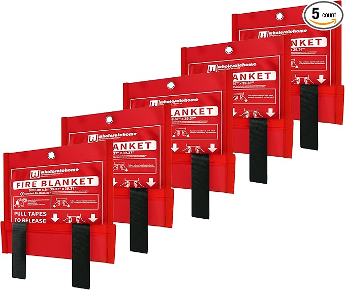 Fire Extinguisher Blanket - Heavy Duty Portable Fiberglass Emergency Blanket - Puts Out Grill & Grease Flames - Safe & Reusable Survival Fire Safety for Home, Kitchen, Car, Camping 1x1m
