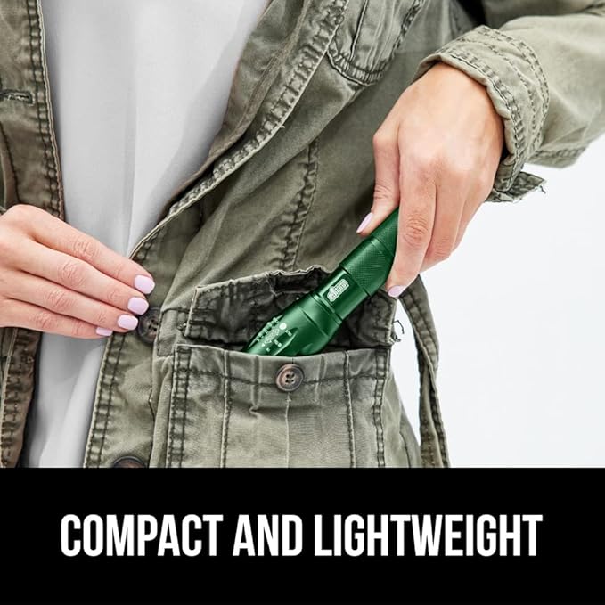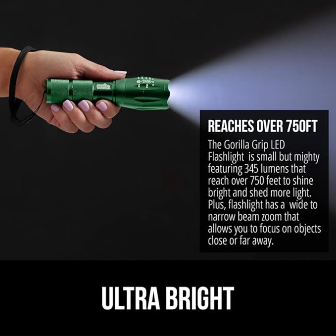 Gorilla Grip Powerful LED 750 FT Water Resistant 5 Adjustable Mode Tactical Flashlight, High Lumens Ultra Bright Battery Life Zoom Flashlights, Small Camping Car Mini Flash Light Accessories, Green