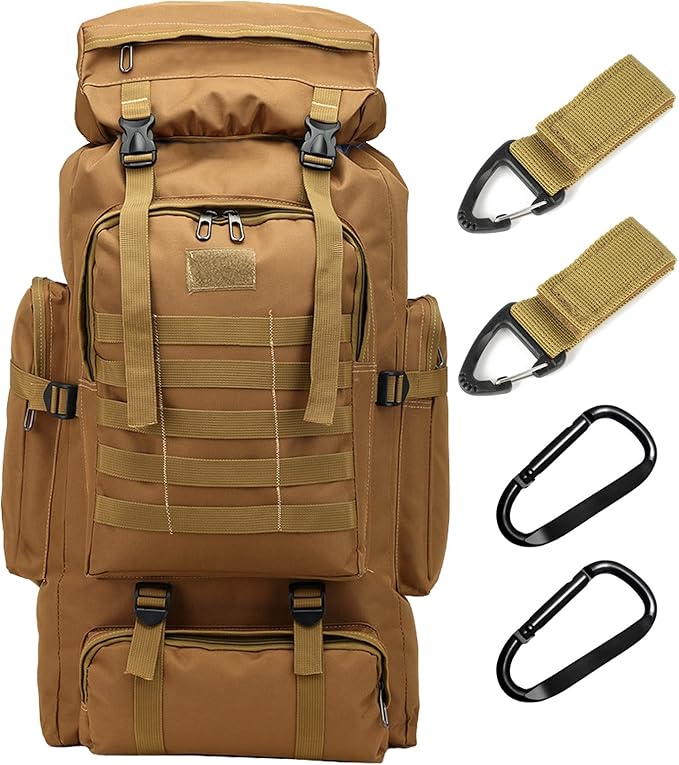 - 70L Large-Capacity: Military rucksuck is made of 600D Oxford fabric and waterproof materials, making it more robust, durable, tear-resistant, and scratch-resistant compared to other hiking backpacks. With a massive 70L capacity, this packable backpack is suitable for your one-week journey, accommodating items such as sleeping bags, clothing, shoes, notebooks, and more.