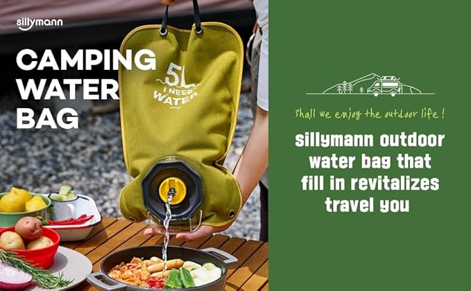 Camping Water Bag,Militaries Grade Material, Wide Mouth, Collapsibe Washable, Outdoor Camping Traveling, 1.3Gallon(5L)(MOUNTAIN GREEN)