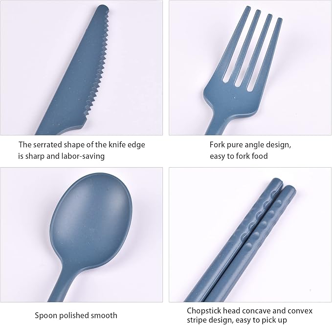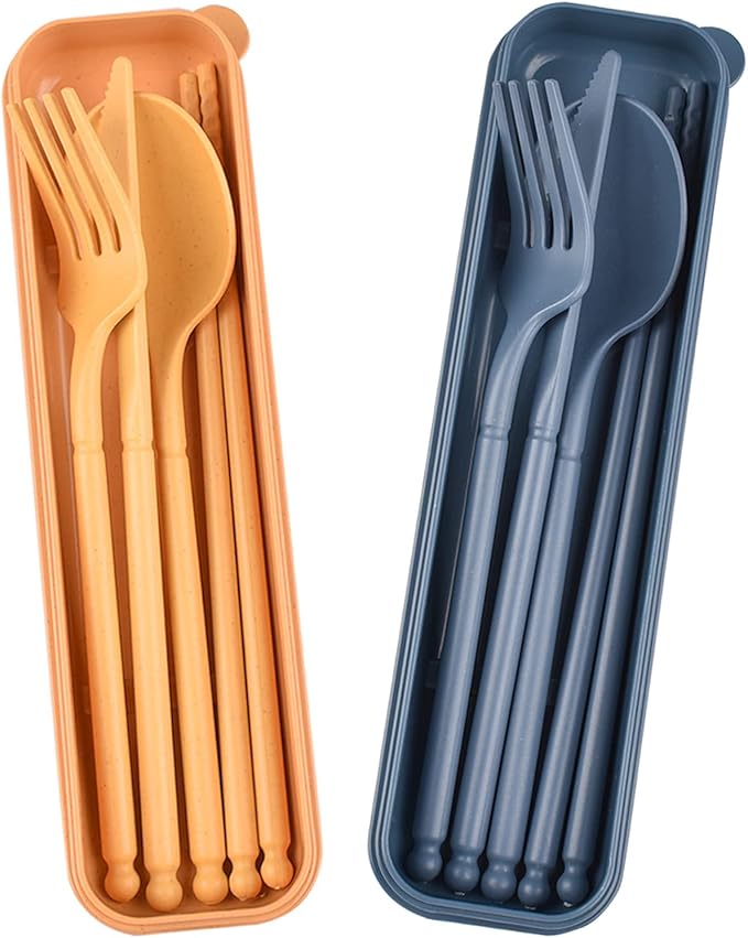 - Package Includes: 2 of set portable cutlery with Navy blue, yellow, Each cutlery case set is included one fork, one chopsticks, one spoon and one knife.