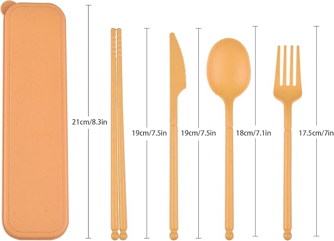 - Suitable Size: The case box size is 21x5.5x3cm(8x2.2x1.2inch); Knife size is 19cm/7.5inch; Spoon size is 17.5cm/6.9inch; Fork size is 18.5cm/7.3inch; Chopsticks size is19cm/7.5inch.