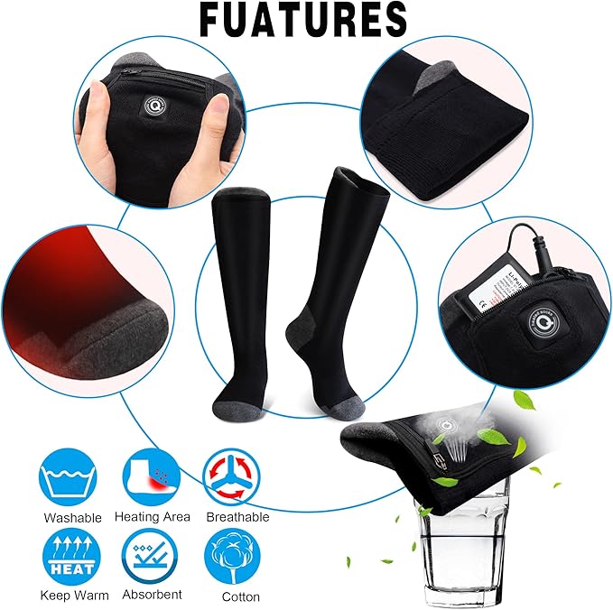 - Speandex Fabric cotton 7.4V Rechargeable Heated Socks for Men Women (Battery Included)-Washable Electric Thermal Warming Socks for Hunting Winter Skiing Outdoors,Battery Operated Heat Insulated Socks Kit