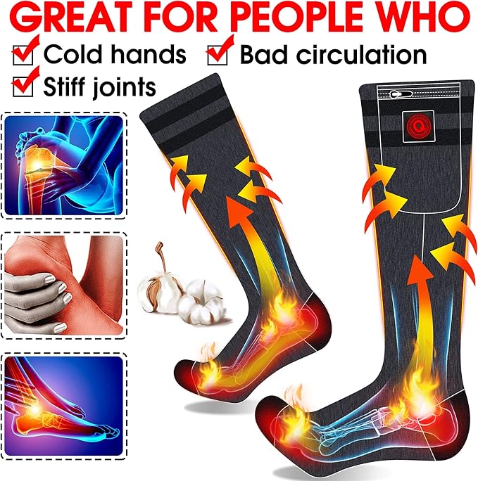 - Spandex fabric cotton Heated Socks for Women and Men,7.4V Rechargeable Battery Operated Socks Washable Electric Heated Foot Warmer Thick Cotton Sox for Hiking Camping Skiing Fishing Hunting Mountaineering