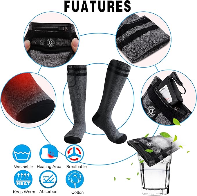 - Speandex Fabric cotton 7.4V Rechargeable Heated Socks for Men Women (Battery Included)-Washable Electric Thermal Warming Socks for Hunting Winter Skiing Outdoors,Battery Operated Heat Insulated Socks Kit
