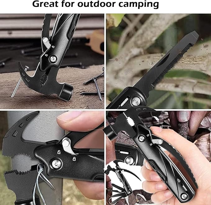 - 【Wide range of application】This outdoor universal hammer is very suitable for camping, fishing, hiking, DIY work and an excellent multi-tool hammer. Can pry, screw, open fire hydrants, saw wood, strong enough to break glass curtain walls, break rope curtain escape in danger.