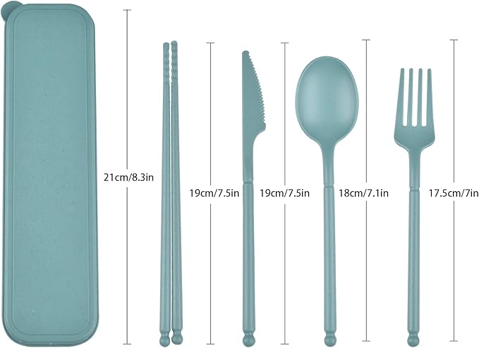 - Package Includes: 1 of set portable cutlery with Dark green, Each cutlery case set is included one fork, one chopsticks, one spoon and one knife.