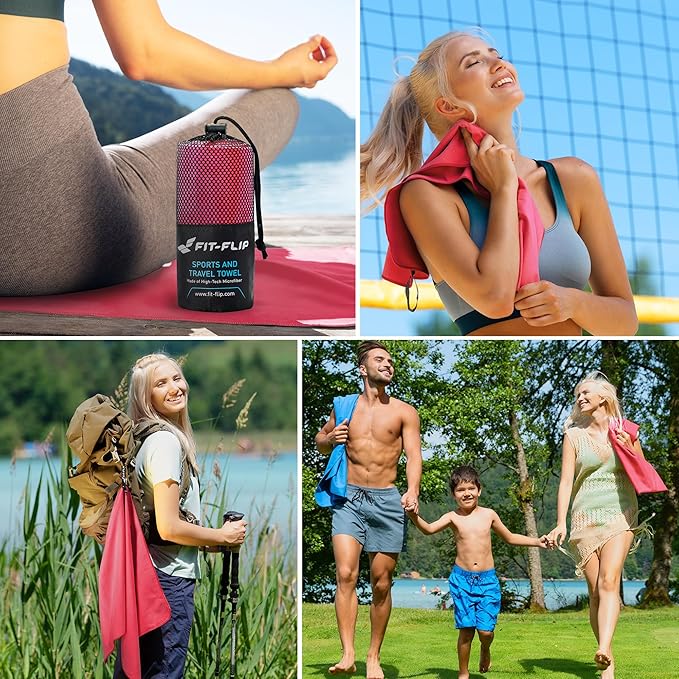 Fit-Flip Travel Towel - Compact & Ultra Soft Microfiber Camping Towel - Quick Dry Towel - Super Absorbent & Lightweight for Sports, Beach, Gym, Backpacking, Hiking and Yoga