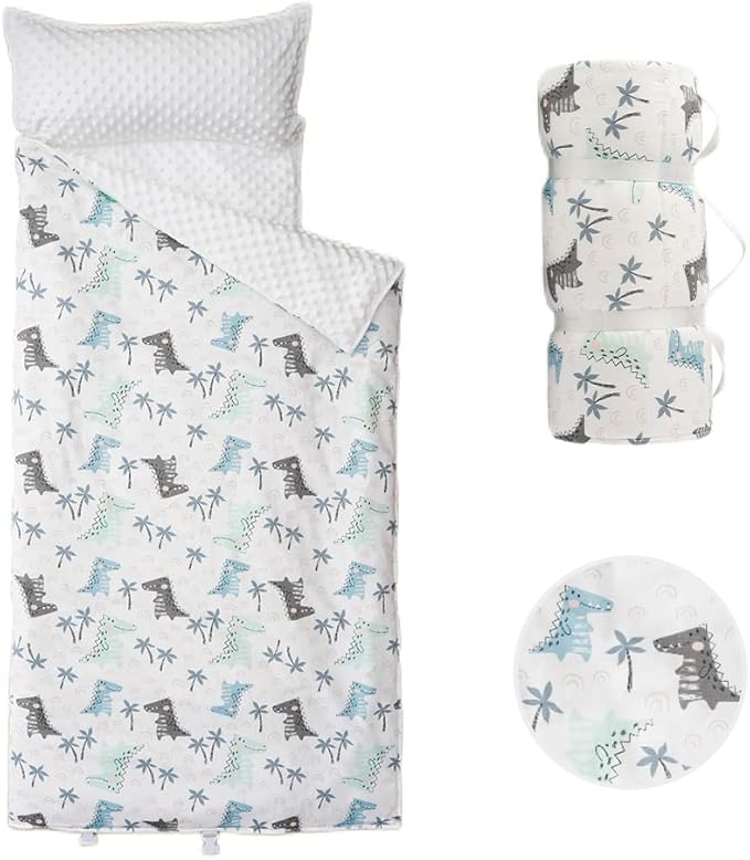 - CONVENIENT FEATURES: Designed to roll-up, velcro close, and carry away with a handle, this nap blanket with pillow is easy to carry to daycare, school, on playdates, or on trips. Our padded nap mat is a toddler and baby essential.