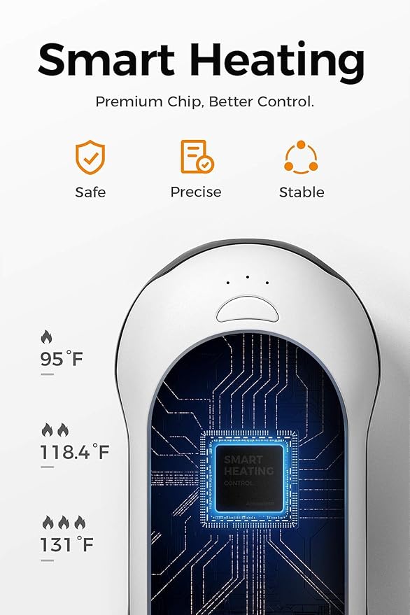 - Smart Safe Heating: safety is our priority, we only use premium chipset to control the heat levels. From gentle warmth to 131°F hot, there are 3 levels of heat to choose from, by a simple button.