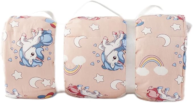 - COMFORTABLE AND WARM: Each lightweight toddler sleeping bag consists of a built-in floor mat, a warm attached blanket, and a pillow - all comprised of a soft cotton and polyester blend that is sure to be gentle on your little one's sensitive skin.
