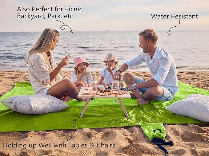 - ✔ SAND PROOF AND WATER RESISTANT-This beautifully colored blanket is made of durable ripstop nylon. Just shake the blanket and it easily gets rid of all the sand once. Not only is this wonderful fabric breathable and light-weight, but watch as water beads up and rolls off. The little water that may stay behind will dry VERY FAST.