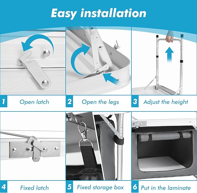 • Compact and space-saving: This camp tables portable foldable design makes it a great choice for those with limited space in their vehicle or campsite. It's also easy to store when not in use.