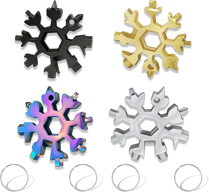 - ❄️【Snowflake Tools High-Quality Materials And Design】The 18-In-1 Snowflake Multi-Purpose Tool Is Made Of High-Quality Steel. It Has The Characteristics Of Ultra-Sturdy, Rust-Proof, Anti-Corrosion, And Excellent Hardness. This Snowflake Tool Is Durable. The Unique Snowflake-Shaped Design Allows Us To Creatively Combine The Perfect Shape Of Nature With The Functions And Design Of Our Compact Multifunctional Tools
