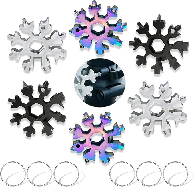 - ❄️【18-In-1 Snowflake Multi Tool Pocket Size 】The 18-In-1 Snowflake Multi-Purpose Tool Is Only 2.3 Ounces, Compact And Convenient, Does Not Take Up Space, And Is Easy To Carry And Use. Comes With a Ring. It Can Be Hung Or Backpack. The Ring Is Designed To Avoid The Possibility Of Loss. For Men, Dads, Colleagues, And Boyfriends, This Is a Cool And Valuable Holiday Gift.