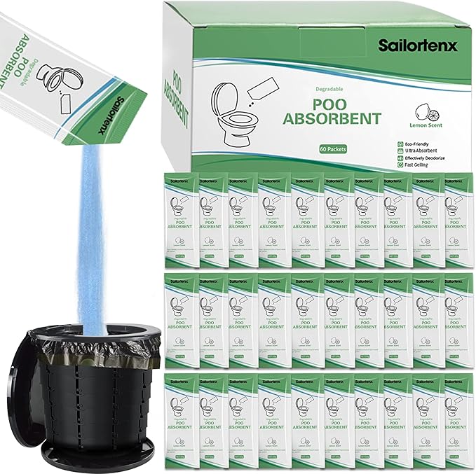Poo Absorbent for Portable Toilet, Camping Toilet Chemicals, Eco Degradable Absorbent Gel Liquid Waste Gelling and Deodorizing Absorbent Emergency Toilet Waste Treatment