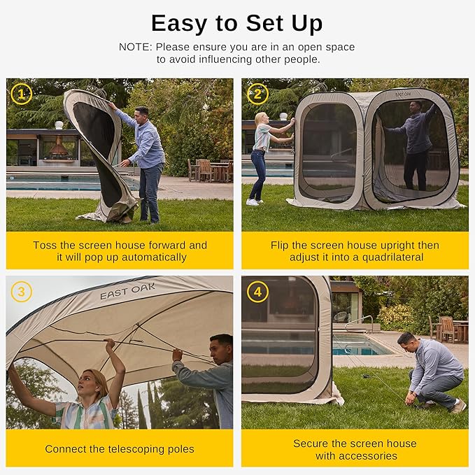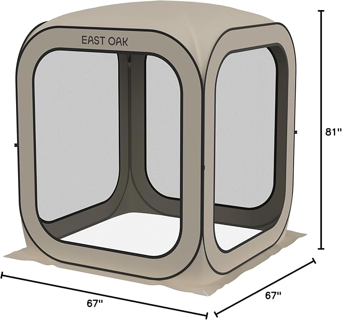 - ๐๐๐ด๐-๐ฃ๐ฟ๐ผ๐ผ๐ณ ๏ผ ๐ฉ๐ฒ๐ป๐๐ถ๐น๐ฎ๐๐ฒ๐ฑ ๐ฆ๐ฝ๐ฎ๐ฐ๐ฒ : The EAST OAK portable pop-up screen tent features a 4-sided B3 fine mesh design for 360ยฐ perfect ventilation and can protect you from mosquitoes or other bugs. The tent body is made of high-quality Oxford fabric coated with silver to achieve all-day UPF 50+ UV resistance. Ideal for creating a comfortable and protected resting space during various outdoor activities (picnics, camping)