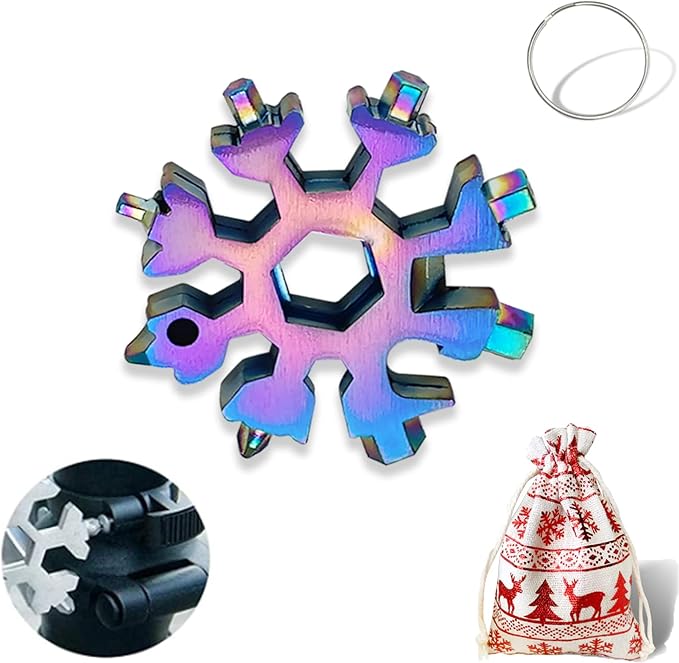 - ❄️【18-In-1 Snowflake Multi Tool Pocket Size 】The 18-In-1 Snowflake Multi-Purpose Tool Is Only 2.3 Ounces, Compact And Convenient, Does Not Take Up Space, And Is Easy To Carry And Use. Comes With a Ring. It Can Be Hung Or Backpack. The Ring Is Designed To Avoid The Possibility Of Loss. For Men, Dads, Colleagues, And Boyfriends, This Is a Cool And Valuable Holiday Gift.