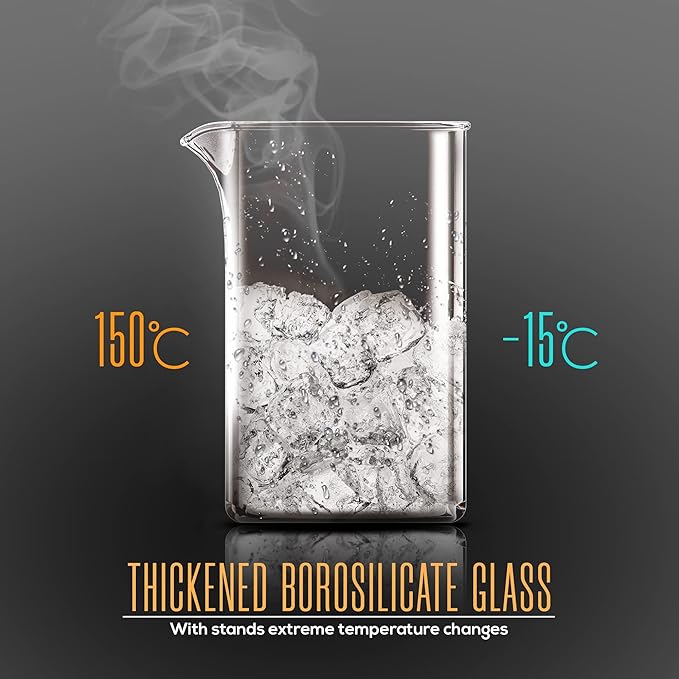 - Durable heat resistant borosilicate glass carafe beaker sits in stylish insulated plastic frame which makes pouring coffee easier and prevent wobbling