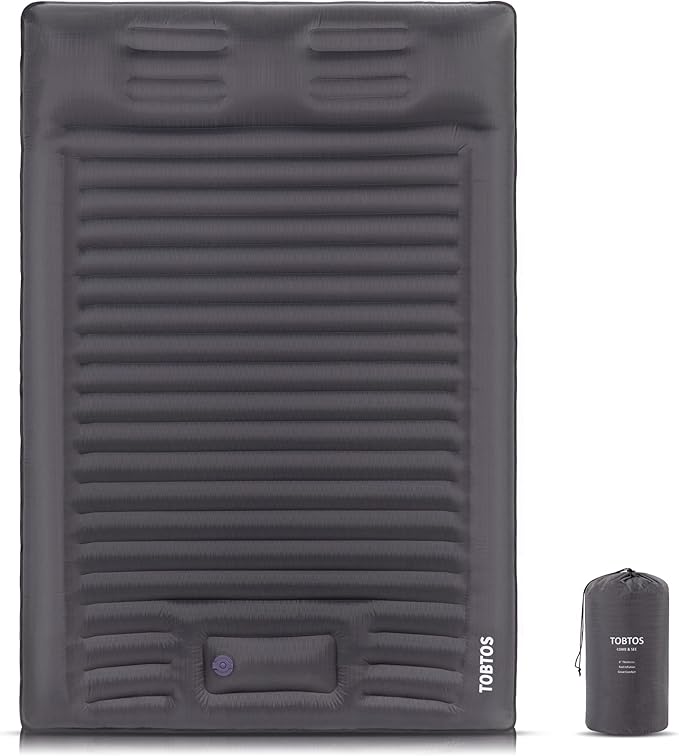 TOBTOS Double Sleeping Pad for Camping, Extra Thick 6" Camping Mattress 2 Person with Pillow Built-in Foot Pump, Inflatable Sleeping Mat for Camp, Backpacking, Hiking, Traveling