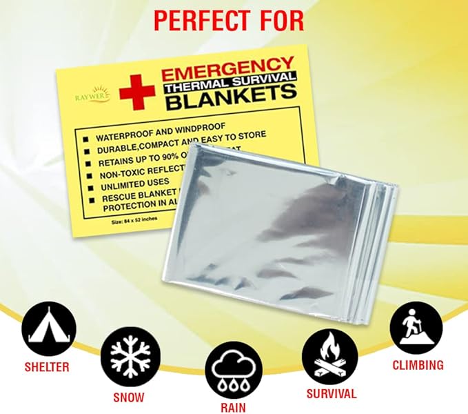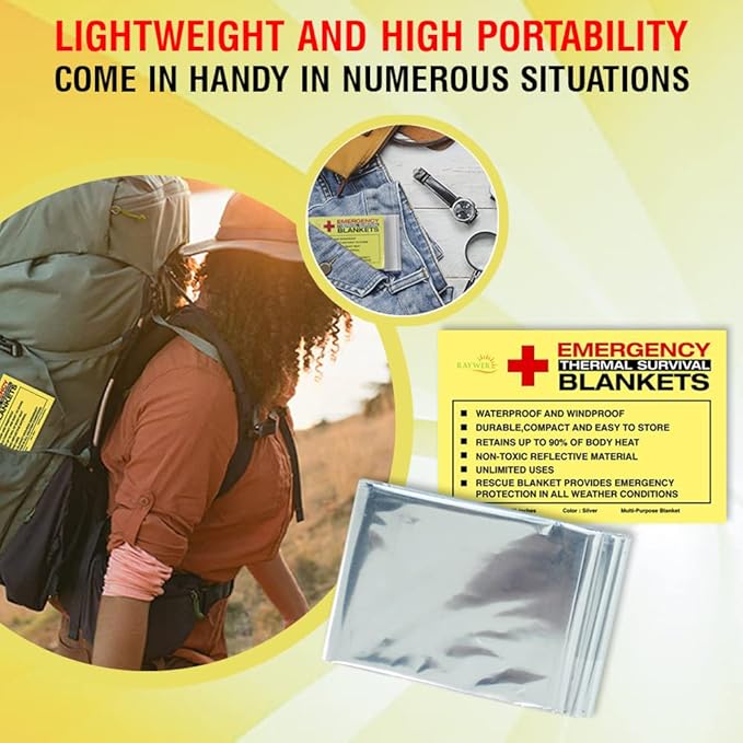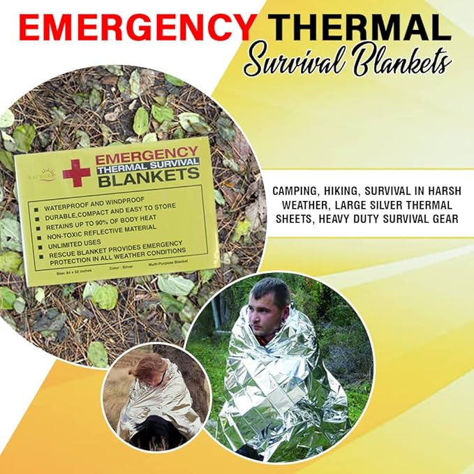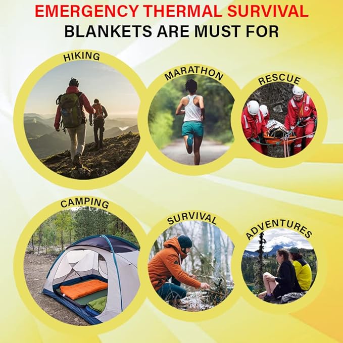 - THERMAL EMERGENCY BLANKETS: If you have a love for adventure and are always ready to pack your go-bags, these emergency thermal blankets for survival are a must for you. Be it hiking, camping, marathons, survival, or any outdoor adventure, you can count on these blankets for maximal safety assurance.