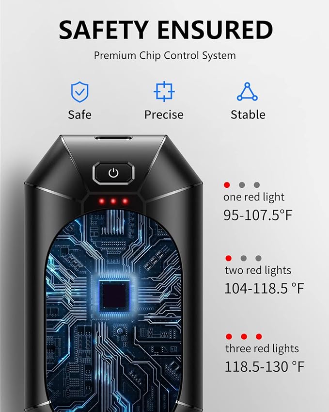 - 【Stable Instant Heat】No more longtime wait, electric hand warmers using the premium chip control system. Double-sided heat up to 131°F/55°C operating temperature with 1-second fast heating and 3 levels of temperature settings for adjustable and precise stable comfortable warmth.