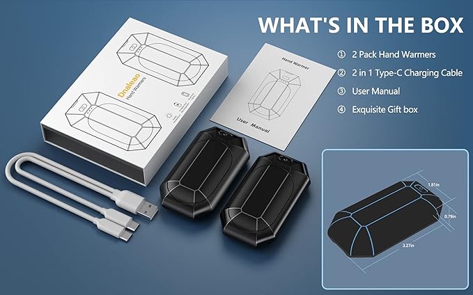 - 【2 Packs Hand Warmers】The 2 in 1 design hand warmers with a stylish look are portable and compact. Ergonomic design to make you more comfortable. Portable pocket designs fit for traveling, sports, football, hunting, golf, fishing, hiking, camping, skiing, etc.