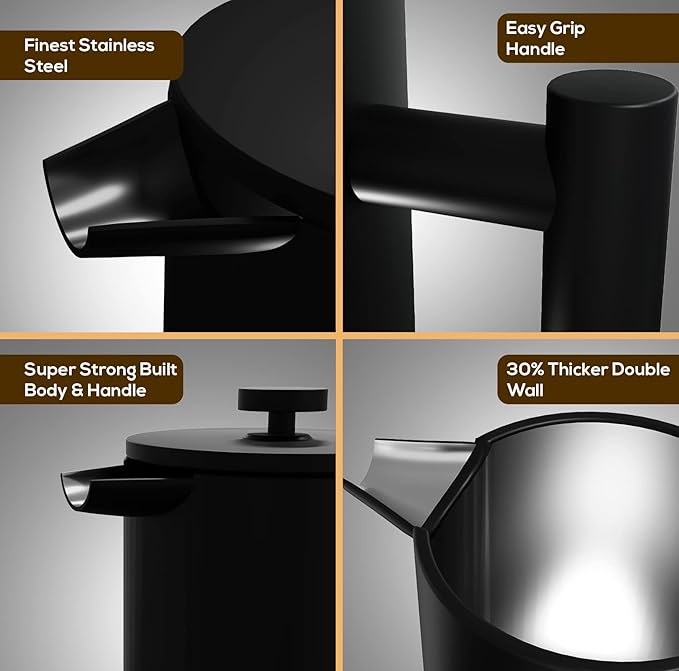 - Sleek Stainless Steel – The coffee maker is created using 304 grade stainless steel, with a smooth and durable finish and carefully designed to give you the French press you need.