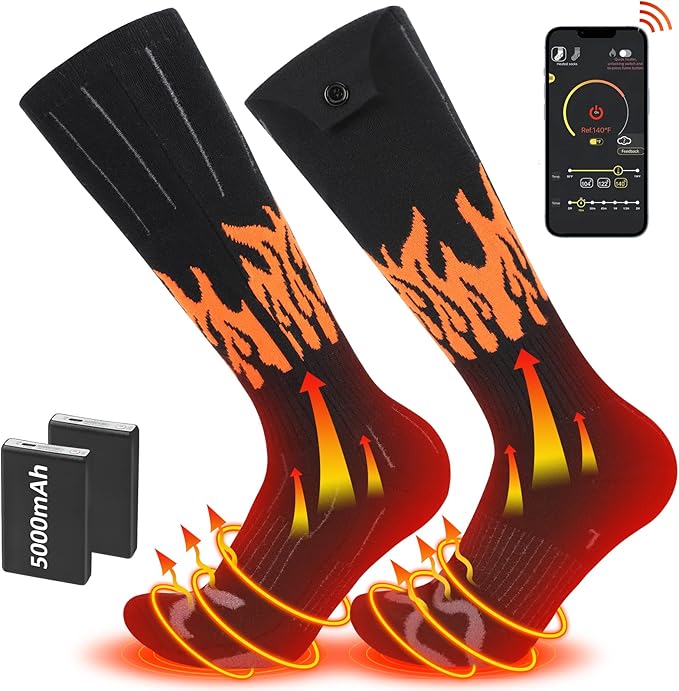 Heated Socks, Rechargeable Heated Socks for Men Women, Battery Powered Foot Warmer with APP Control for Winter Hunting Skiing Camping Hiking