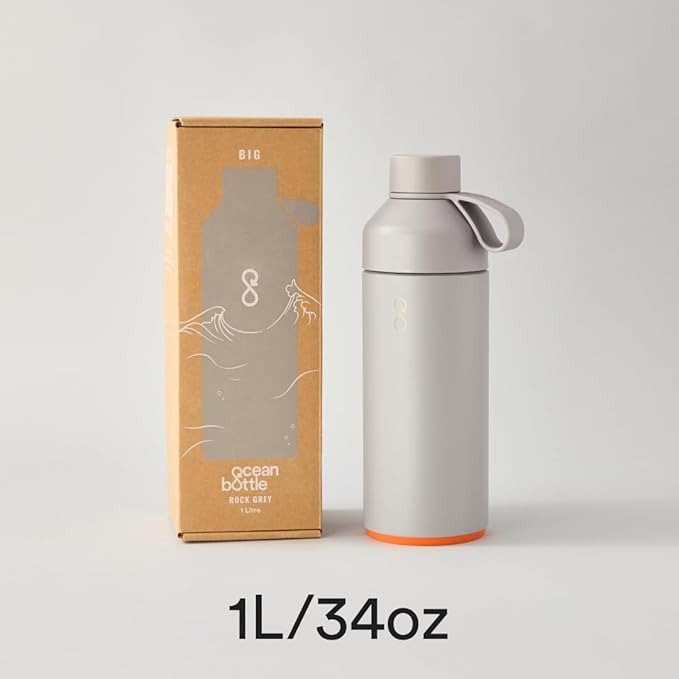 Ocean Bottle - Recycled Stainless Steel Drinks Reusable Water Bottle - Eco-Friendly & Reusable - Rock Grey - 34 oz