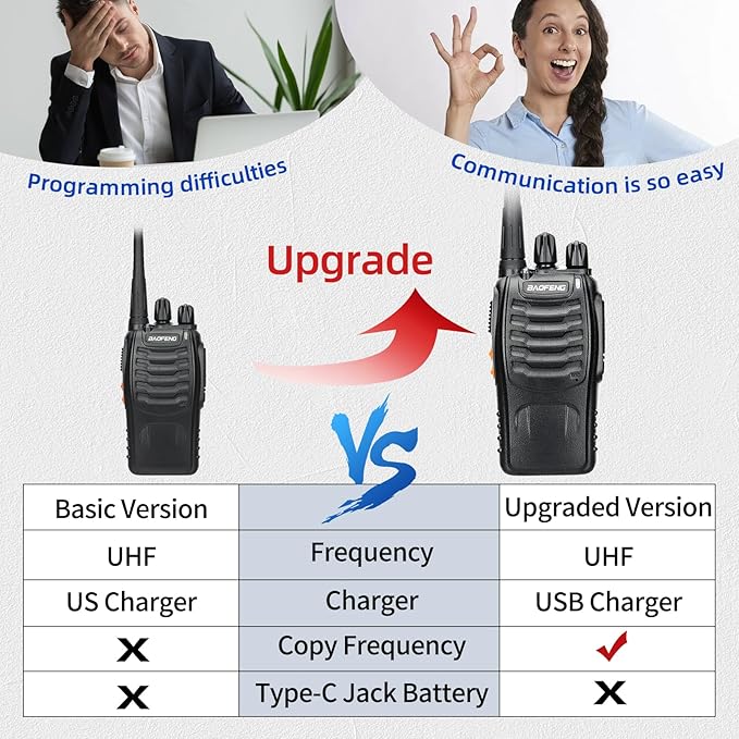 - Copy Frequency: Easily decipher the frequency of another ham walkie talkie without the need for computer programming.