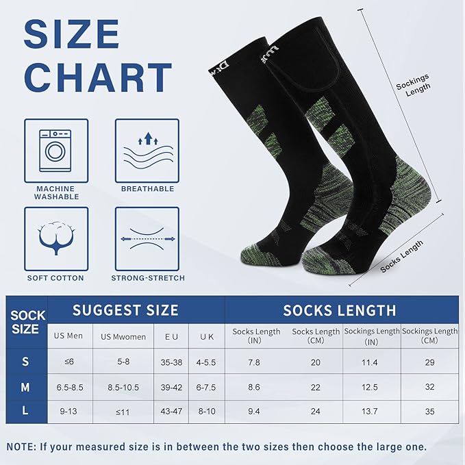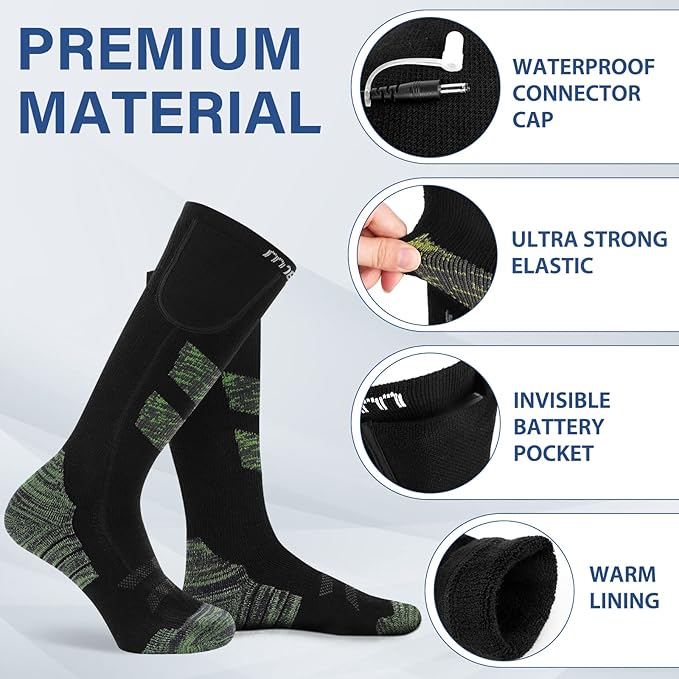 - 【ELASTIC BREATHEABLE ELECTRIC HEATED SOCKS】The battery socks are designed with an elastic and thin heating sheet, allowing you to walk comfortably after putting on the socks. The premium material makes the warming socks breathable and sweat-absorbing, making your feet dry.
