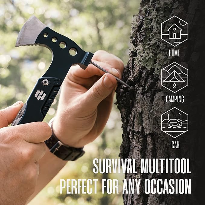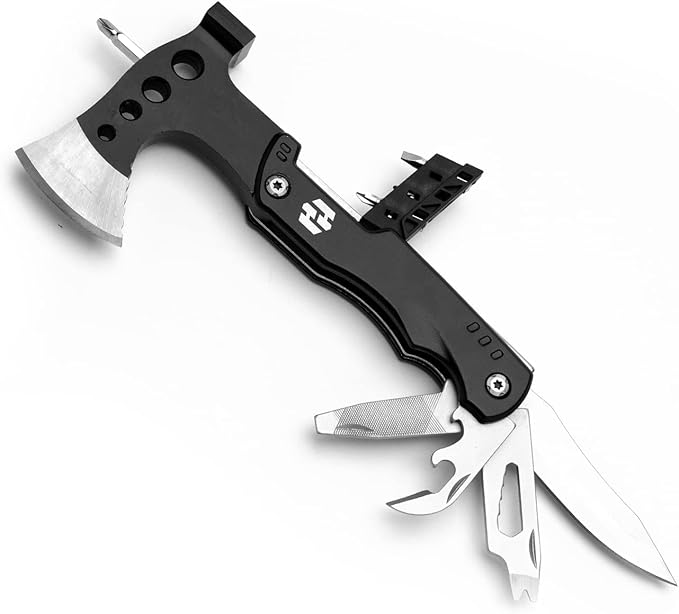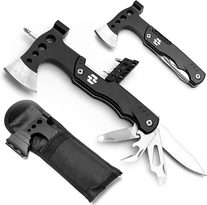 Camping Multitool - Camping Axe - 10 In 1 Stainless Steel Pocket Hatchet Multi tool With Durable Sheath For Outdoor, Survival Gear - Safety Locking Camping Accessories With Wrench by Hayvenhurst