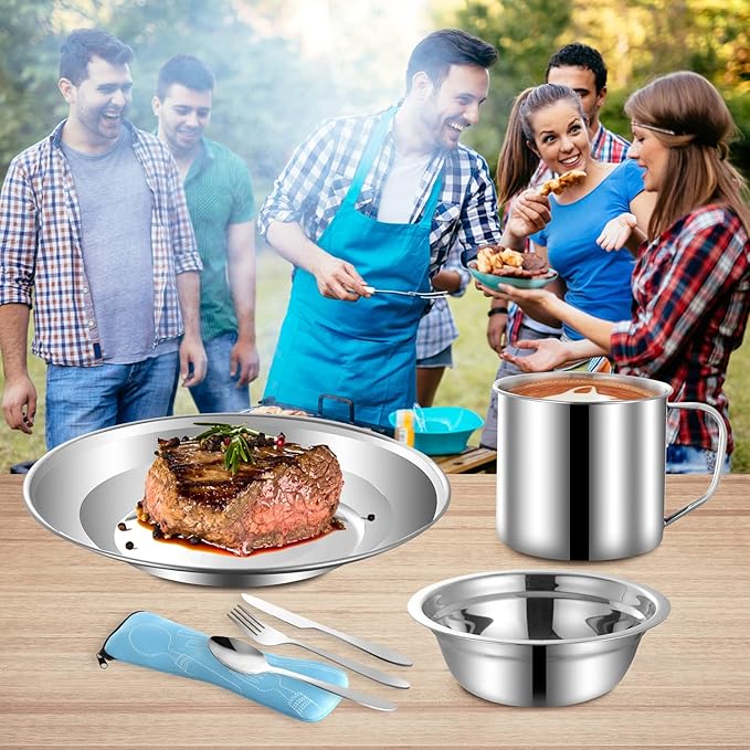 - WIDELY USED:Ideal for camping, hiking, beach trips, and spending the summer at the lake, these lead, BPA, and latex-free stainless-steel bowls and plates make it easier to enjoy delicious food, snacks, and meals with ease.