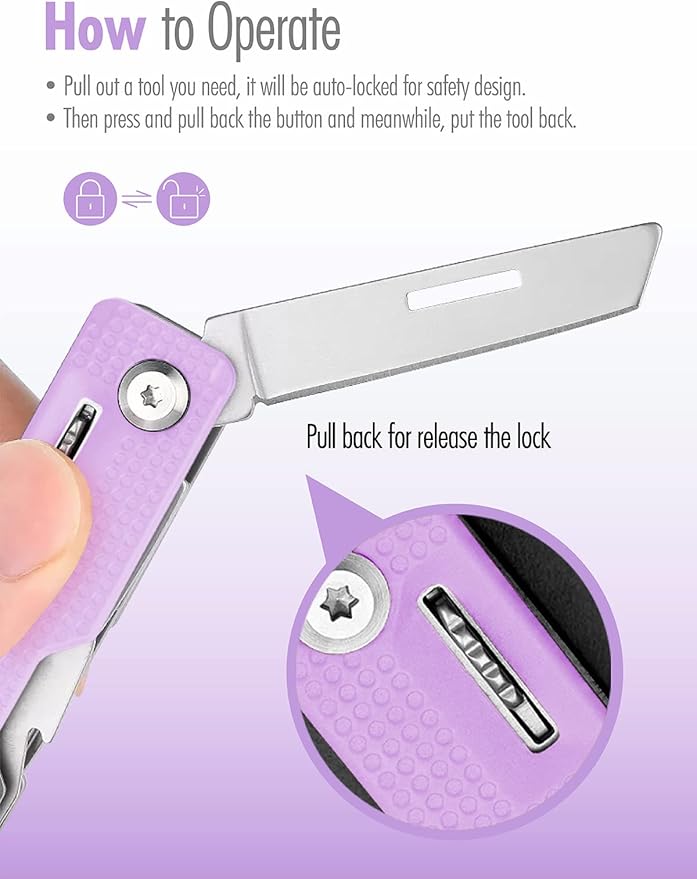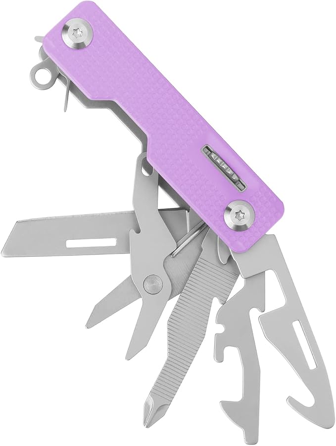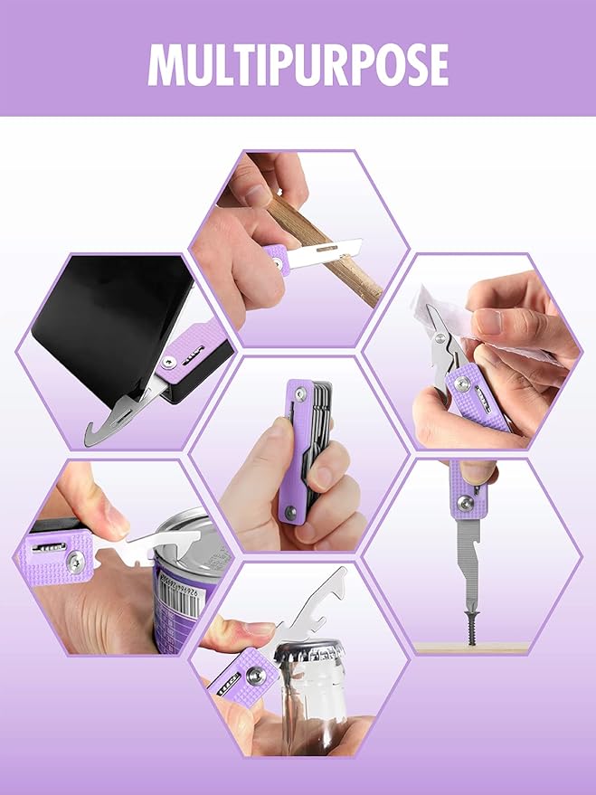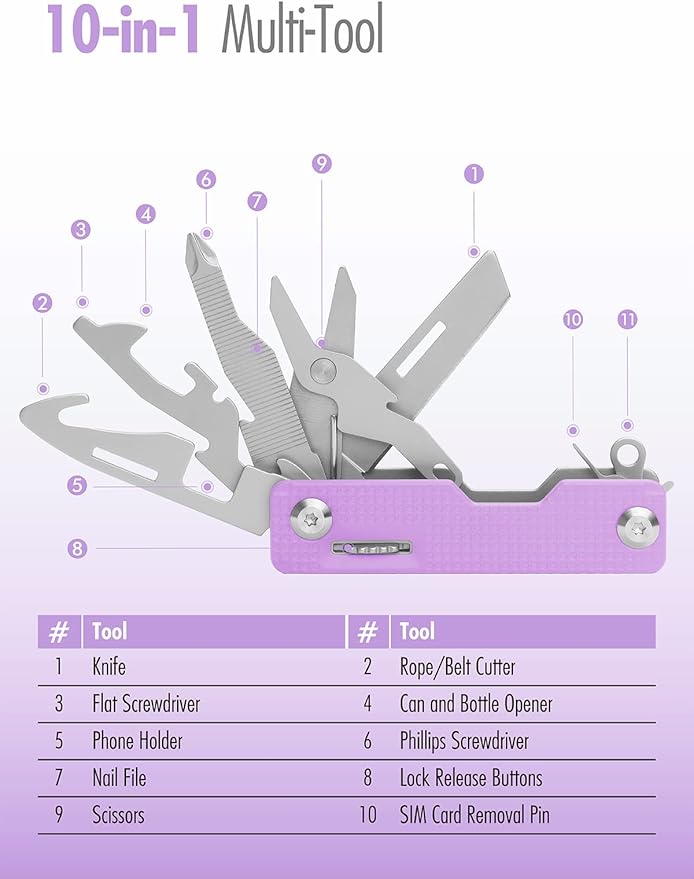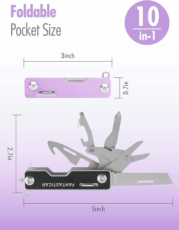 FantastiCAR 10 in 1 Multi-tool, EDC Folding Pocket Knife with SIM Card Removal Pin for Daily Needs, Outdoor Activities, Christmas Gifts (Purple)