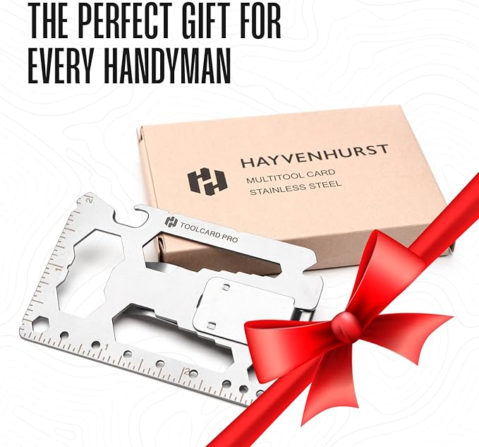 Multitool Card - Credit Card Multitool - Wallet Size Slim, Minimalist, Stainless Steel - Multipurpose Survival Card With Can Opener, Screwdrivers, Wrench, Ruler, Money clip by Hayvenhurst