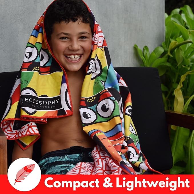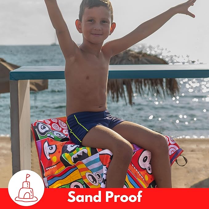 - THE PERFECT GIFT FOR GIRLS AND BOYS- Everyone needs a cute towel especially kids. They can take their favorite towel to swim practice, the beach, camping, hiking, picnics, pool parties, sleepovers, on vacation and road trips. Its a travel friendly towel ready to go with you.