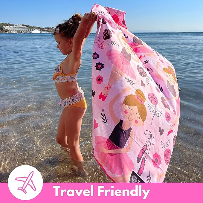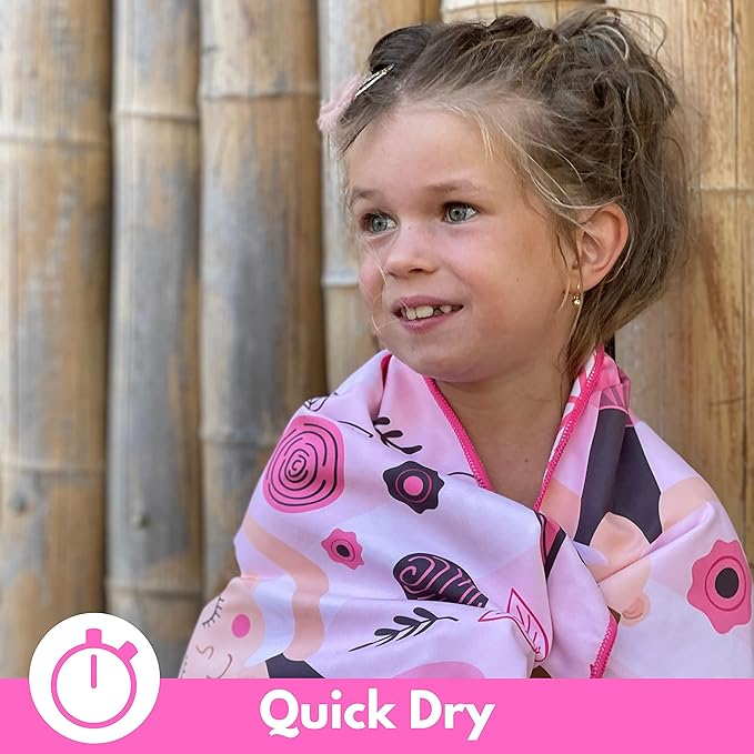 - THE PERFECT GIFT FOR GIRLS AND BOYS- Everyone needs a cute towel especially kids. They can take their favorite towel to swim practice, the beach, camping, hiking, picnics, pool parties, sleepovers, on vacation and road trips. Its a travel friendly towel ready to go with you.