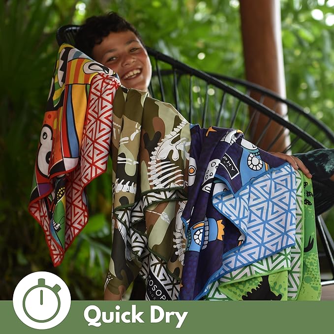 - THE PERFECT GIFT FOR GIRLS AND BOYS- Everyone needs a cute towel especially kids. They can take their favorite towel to swim practice, the beach, camping, hiking, picnics, pool parties, sleepovers, on vacation and road trips. Its a travel friendly towel ready to go with you.
