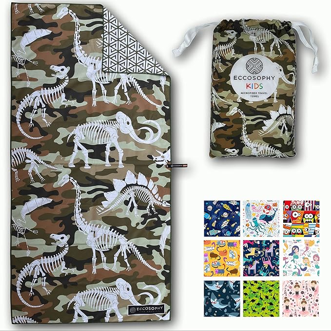 - FUN AT THE BEACH - Your kids will love our signature double sided prints and have twice the fun with them. They are extremely soft, super absorbent and quick drying. Ideal for all outdoor and indoor activities. They come with a matching travel pouch which is easy to carry and easy to store