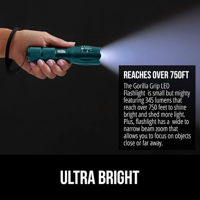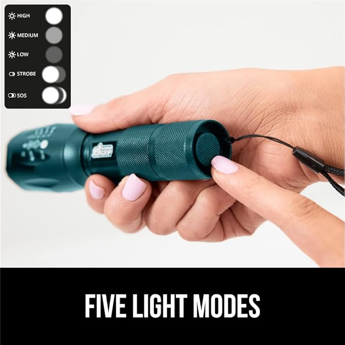 Gorilla Grip Powerful LED 750 FT Water Resistant 5 Adjustable Mode Tactical Flashlight, High Lumens Ultra Bright Battery Zoom Flashlights, Small Camping Car Mini Flash Light Accessories, 2 Pack Teal