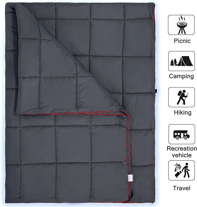 Camping Blanket, Puffy Waterproof Travel Blanket, Warm Cozy Picnic Blanket, for Outdoors, Travel, and Mountain.(Dark Grey, 78" x 56")