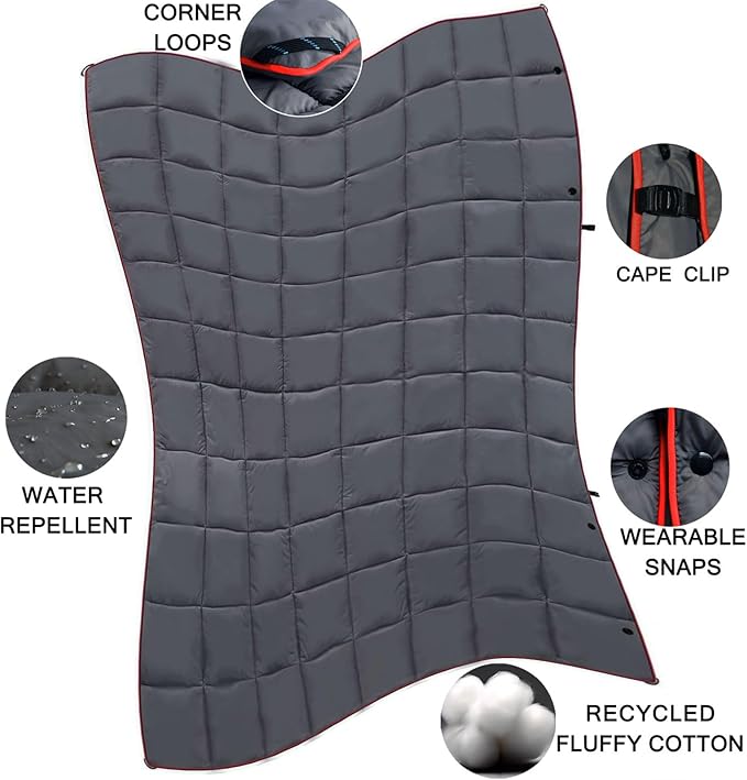 - Wind Blocks Camping Blanket- 20D ripstop nylon shell blocks out wind and cold it keeps you warm even in the cold deep mountains. Try a puffy one, start your journey, and you can enjoy a warm journey. Putting this one in the car, and wear it for your family, being a better parent or family