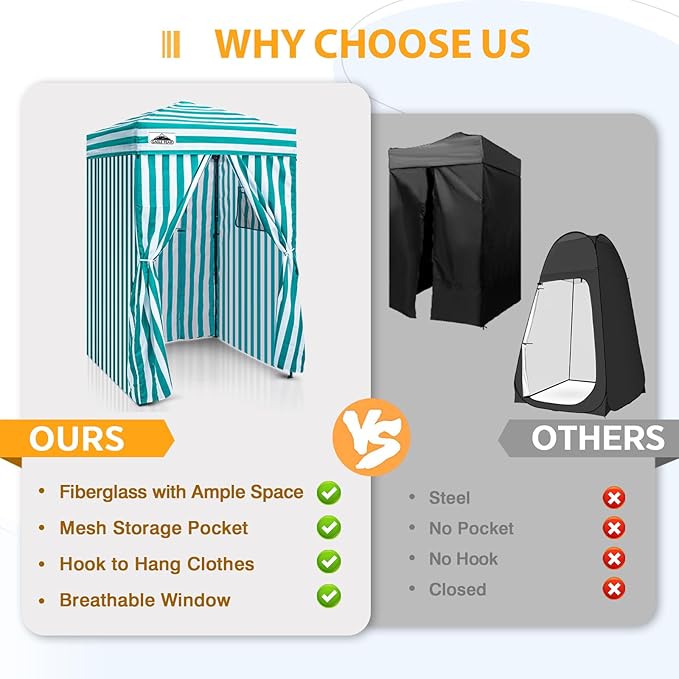 - INSTANT PRIVACY CHANGING ROOM: 4x4 changing tent for one or two people. Perfect as a changing room or sun cabana for outdoor activities: fashion show, photoshoot, camping, backyards, pool party or a showering tent, portable toilet shelter .