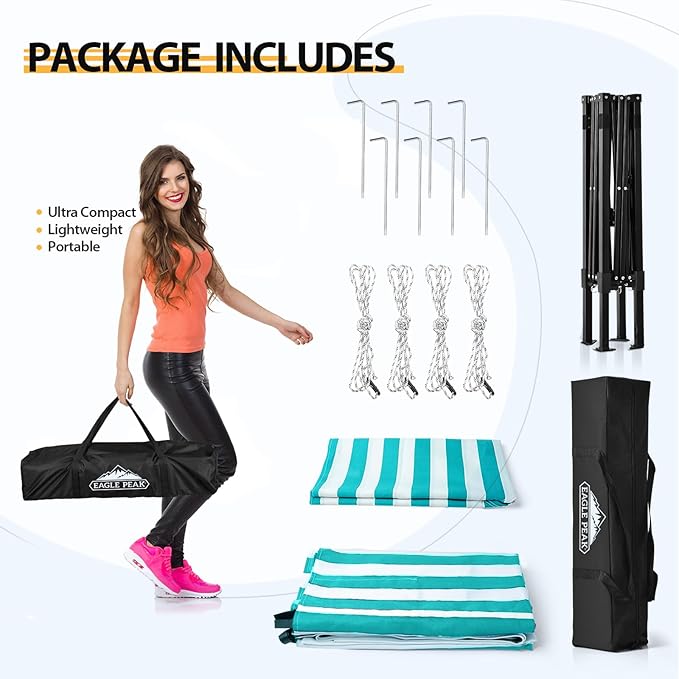 - EASY TO SETUP AND PUT AWAY: The EAGLE PEAK pop up system is more flexible and makes setup easy. The frame glides when opening and closing, enabling one person to easily open and close the canopy .