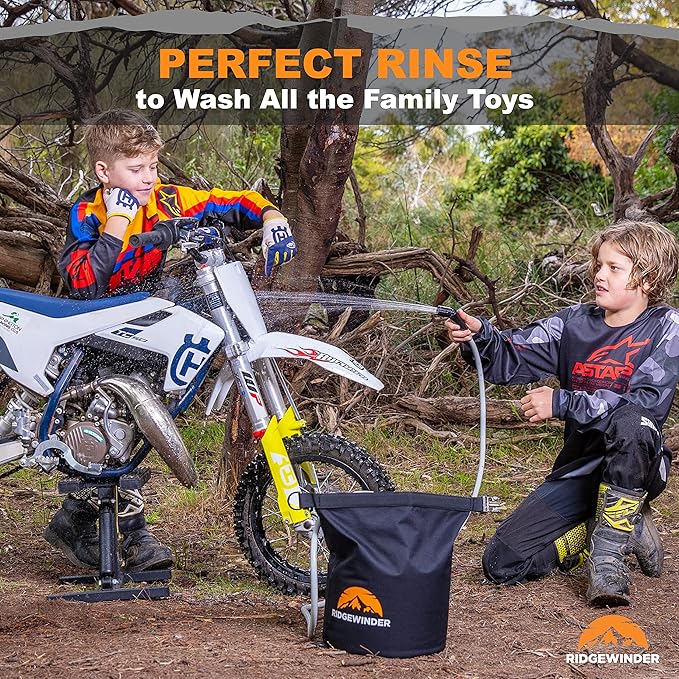 - KEEP THE CAMPSITE CLEAN: You can now look forward to washing the dishes at your campsite after an amazing day in the wilderness. Simply attach the included sprayer attachment to get a strong, focused stream of water, perfectly designed for rinsing dishes and also keeping all your favourite toys clean. Once again, simply fill the 10L Dry Bag with freshwater, drop the battery powered water pump into the water, and a spotless campsite is only moments away