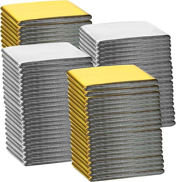 Macarrie 100 Pack Emergency Thermal Blankets Silver Foil Survival Blanket Space Blanket Survival Kit for Outdoors, Camping, Hiking, Homeless, Survival or First Aid (Gold,Silver)