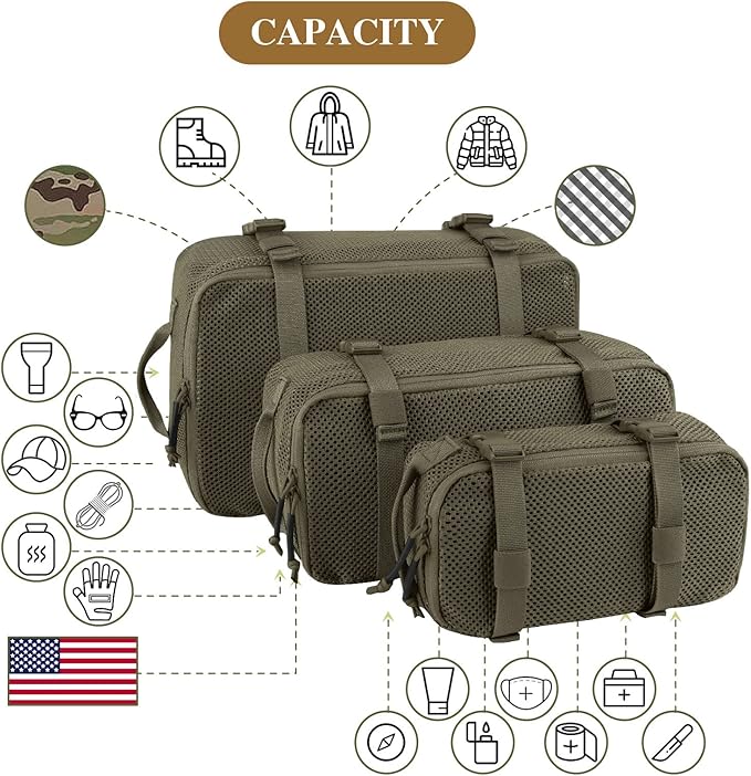 PETAC GEAR 3 PCS Tactical Modular Packing Cubes, Large Capacity Mesh Storage Bag,Outdoor Travel Organize Storage Pouches Bags.